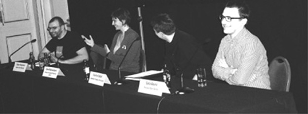Podiumsdiskussion der 3 Filmemacher bzw. Hauptakteure zu. Die